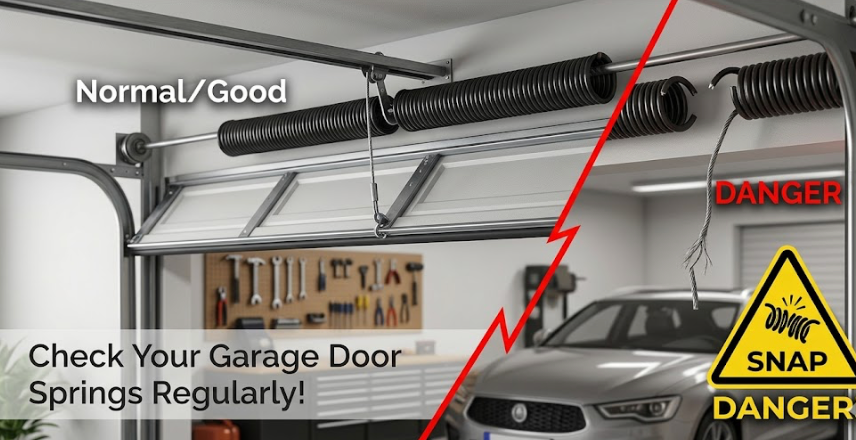 Your garage door is the largest moving object in your home, and the "heavy lifting" isn't actually done by the motor—it’s done by the springs. These springs are under immense tension and have a limited lifespan (usually 10,000 cycles). If a spring snaps while the door is moving, it can cause the door to come crashing down, leading to expensive damage or serious injury. Here are five warning signs that you need to call a professional before it’s too late: 1. A Loud "Bang" from the Garage Most people hear a spring break before they see it. It sounds like a gunshot or a heavy object falling. If you hear a loud mystery noise coming from the garage, check the spring located above the door or along the tracks immediately. 2. The Door Stops After Rising Only 6 Inches Garage door openers have safety sensors. If a spring is broken, the door becomes too heavy for the motor to lift. The opener will sense the weight strain and stop the door almost immediately after it starts opening. 3. Visible Gaps in the Spring A healthy torsion spring (the one above the door) should look like one continuous coil. If you see a 2-inch gap in the middle of the coil, the spring has snapped and lost its tension. 4. The Door Looks Crooked When Opening On doors with two extension springs (along the sides), if one side breaks, the door will pull unevenly. This causes the door to tilt or get stuck in the tracks. 5. Cables Look Loose or "Frayed" When a spring breaks, the tension that keeps the cables tight disappears. If you see cables hanging loosely or "bird-nesting" around the drum, your spring system has failed. Don’t DIY Spring Repairs! Garage door springs are under enough tension to be lethal if handled incorrectly. If you notice any of these signs, keep the door closed and call a certified technician.